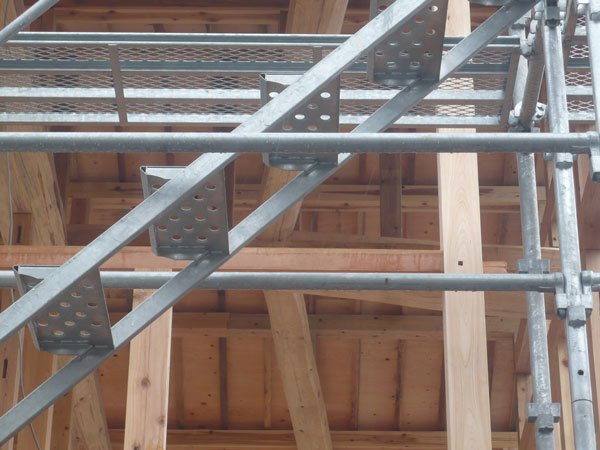 全て杉・桧・松を使用しています。四方転びで地棟と登木の組合せです。胴差しと通し柱は込栓・鯱引で組ボルトは一本も使っていません。